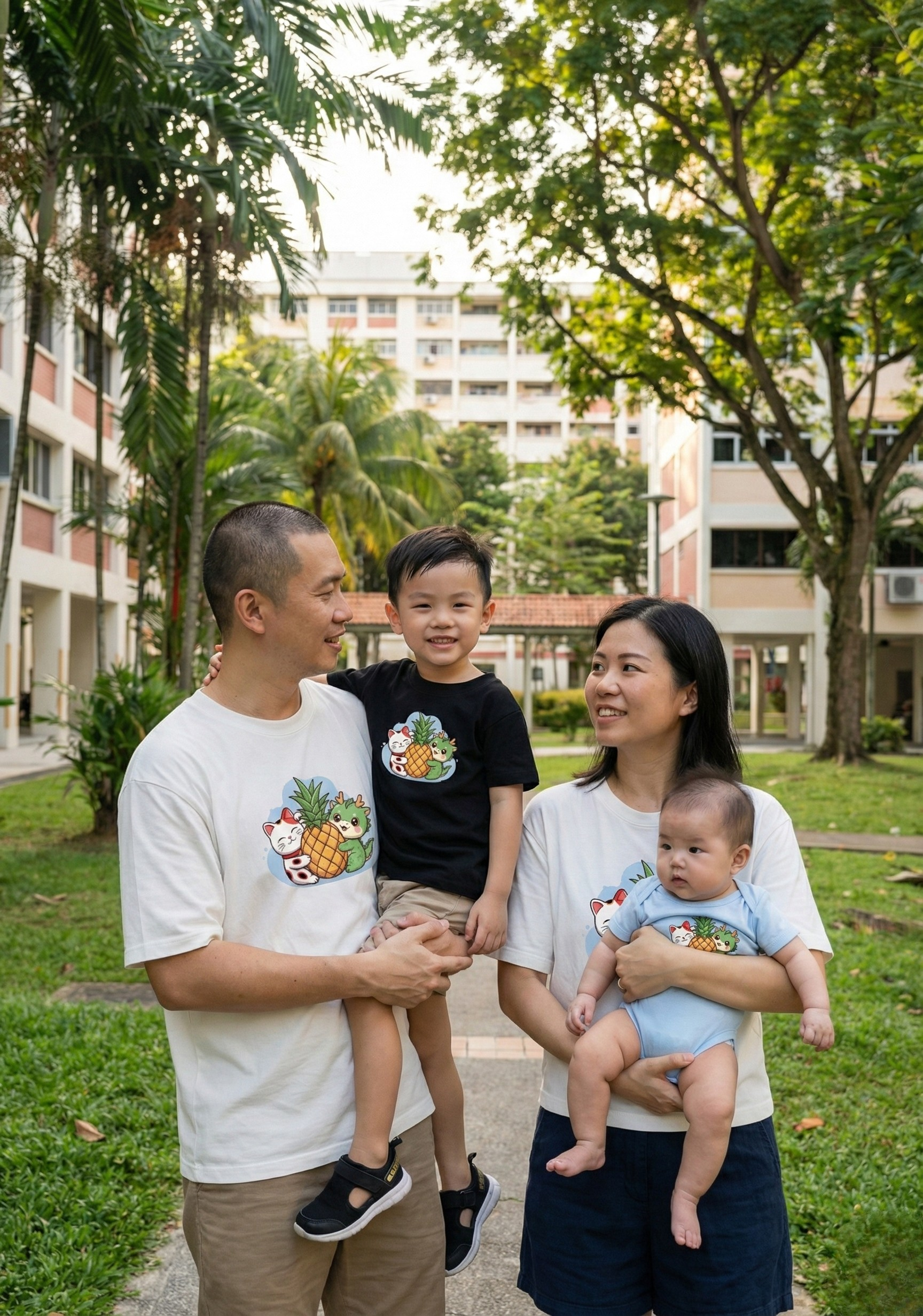 The cute graphic shows a friendly dragon and a sweet cat hugging a lucky pineapple. It's a delightful and comfortable tee that celebrates friendship and good fortune, making it a perfect addition to your little one's wardrobe.