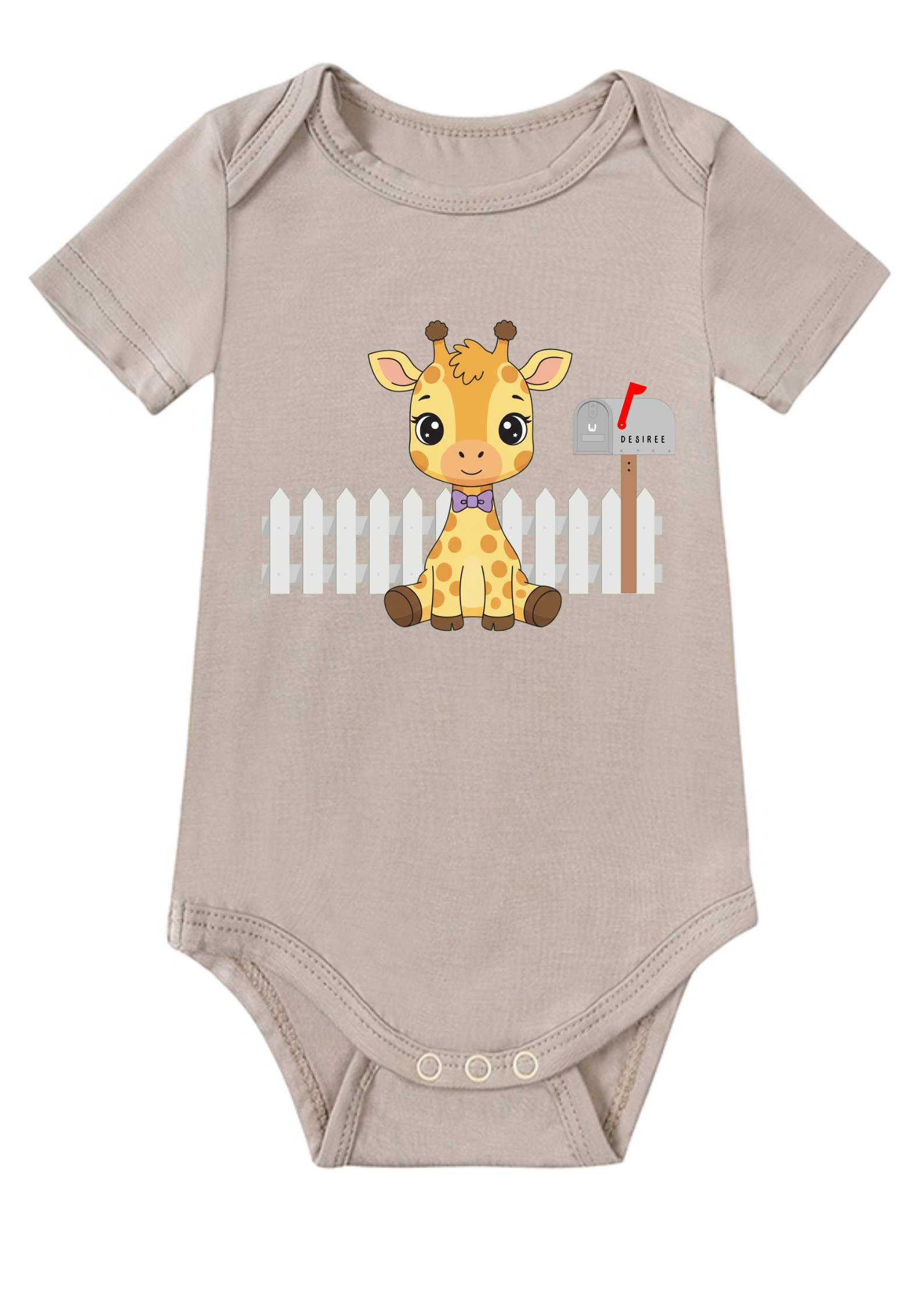 Add a touch of sunshine to your baby’s day with our "Sunny Giraffe" onesie. This delightful design features a cute giraffe print that's as charming as it is comfortable.